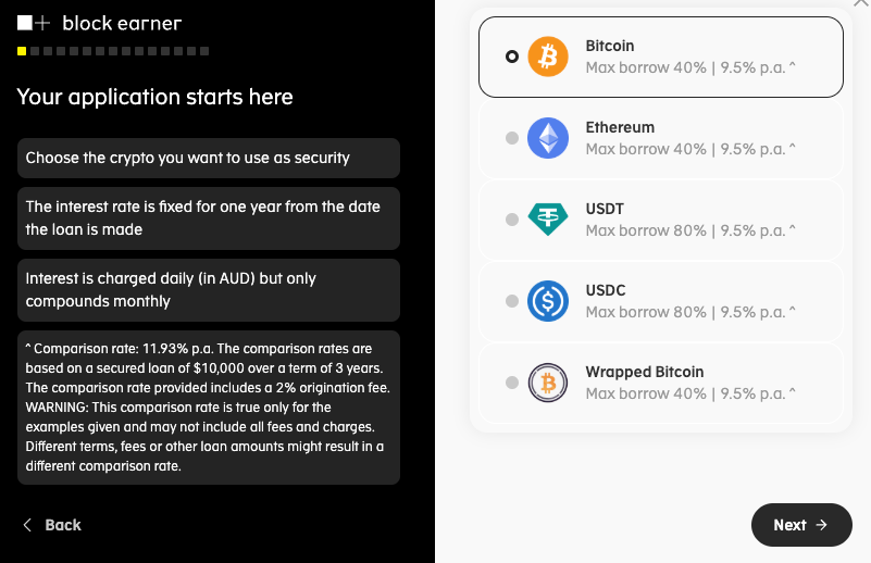 - Loan Offer 2: BTC Fixed Term Loan (e.g., 3-5 year term with a fixed interest rate and up to 50% LVR).