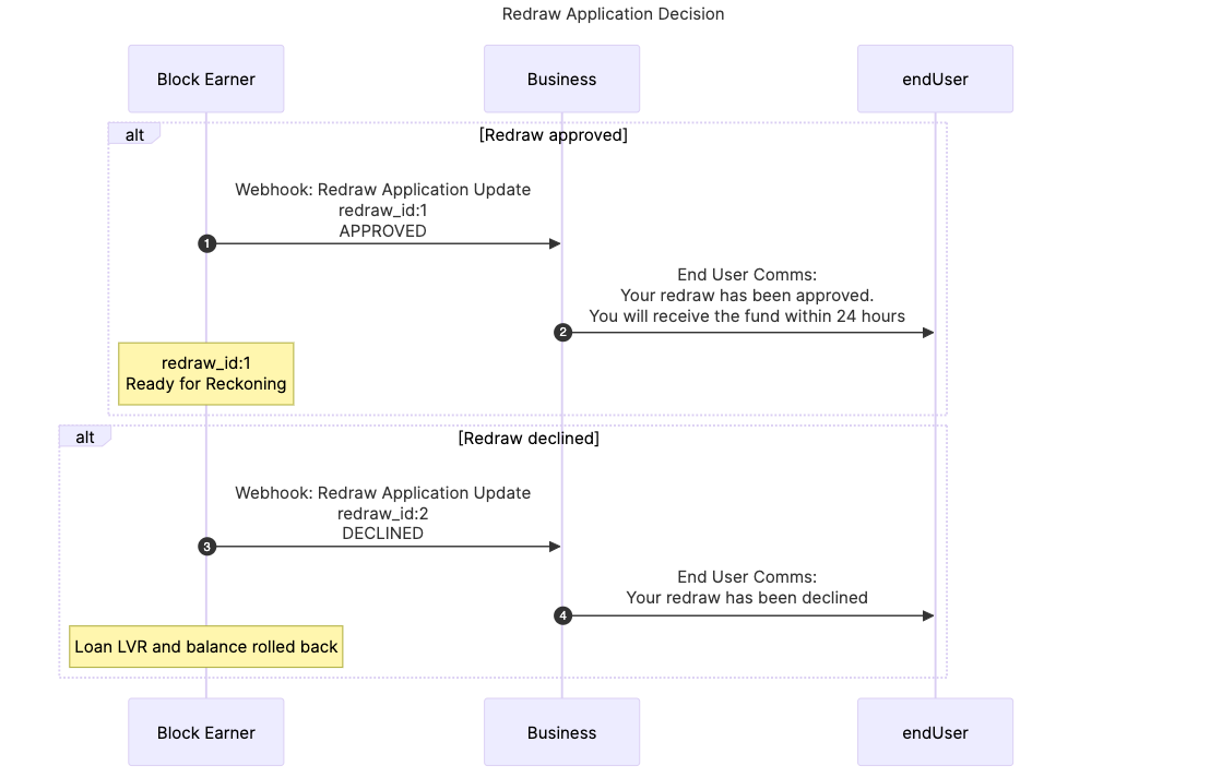 Once the Redraw has been approved or declined, you will receive the decision via Redraw Application Status Update webhook.